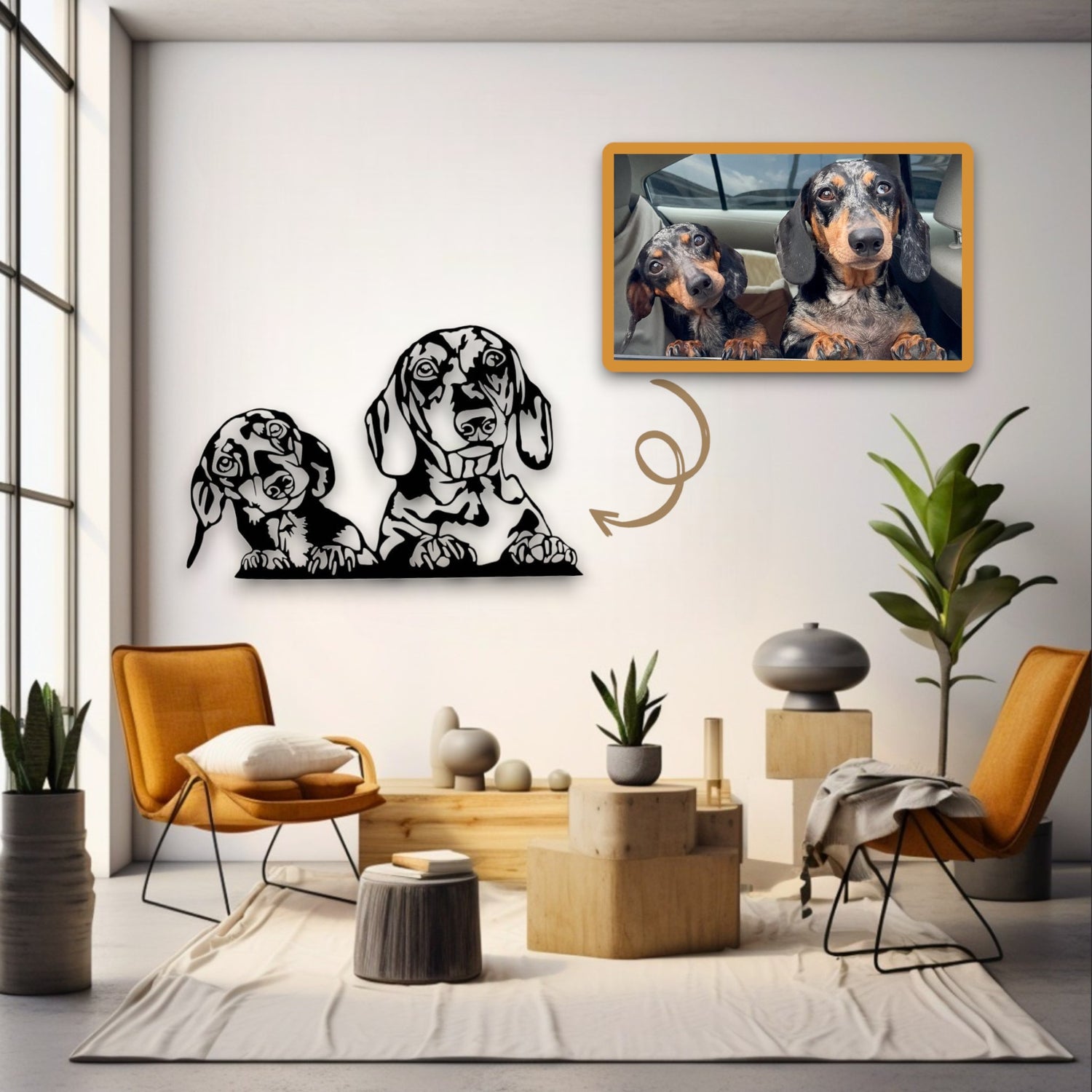 Create personalized metal silhouette for your dog or any pet, capturing their unique features and characteristics. Tailored to your specific preferences, you'll receive a preview for approval, allowing adjustments until you're completely content with the design.